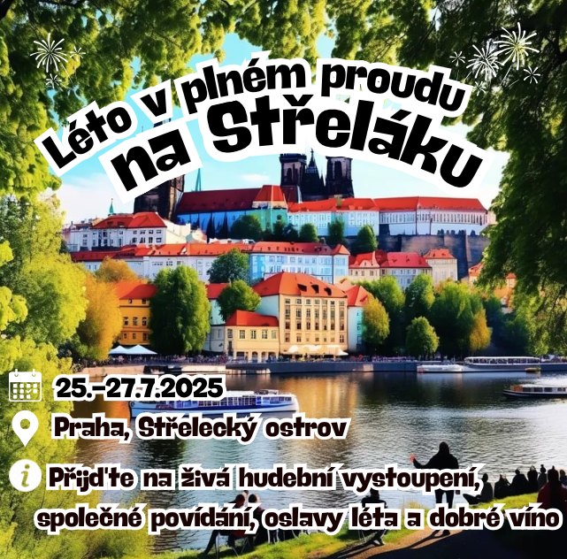 Na místě bude zajištěno pestré občerstvení, posezení i prostor pro odpočinek v přírodním prostředí ostrova uprostřed Prahy. Léto v plném proudu na Střeláku je akcí, která propojuje hudbu, gastronomii a komunitu – skvělá volba pro ty, kdo si chtějí naplno užít letní víkend ve městě.
